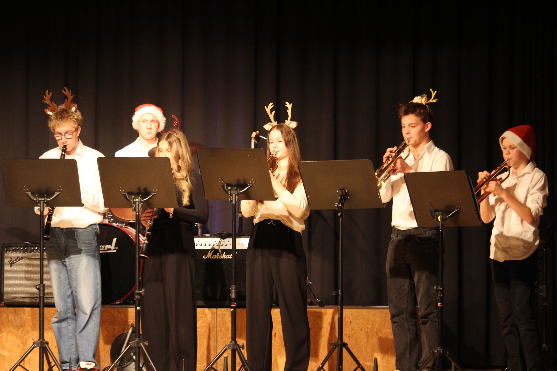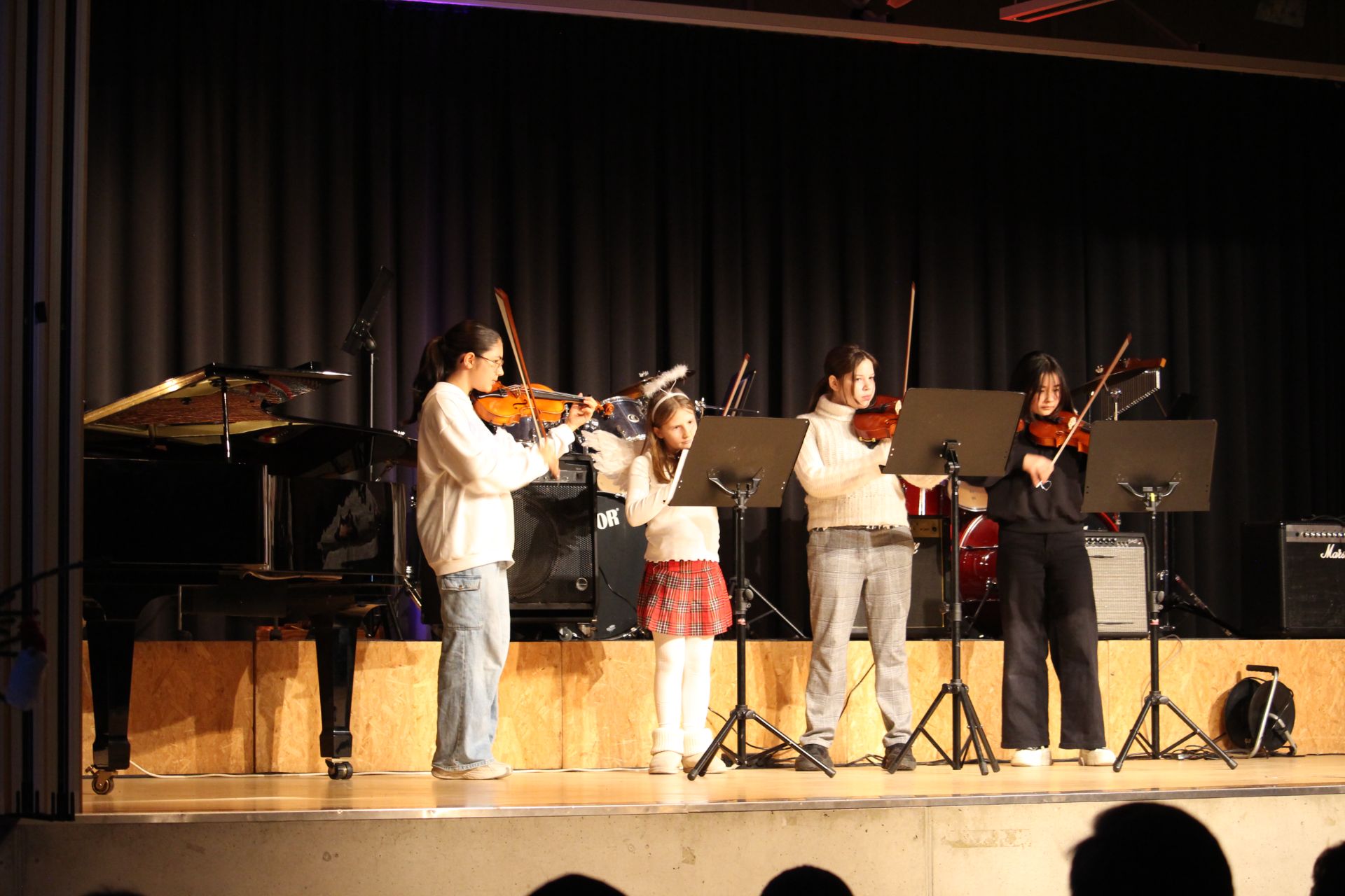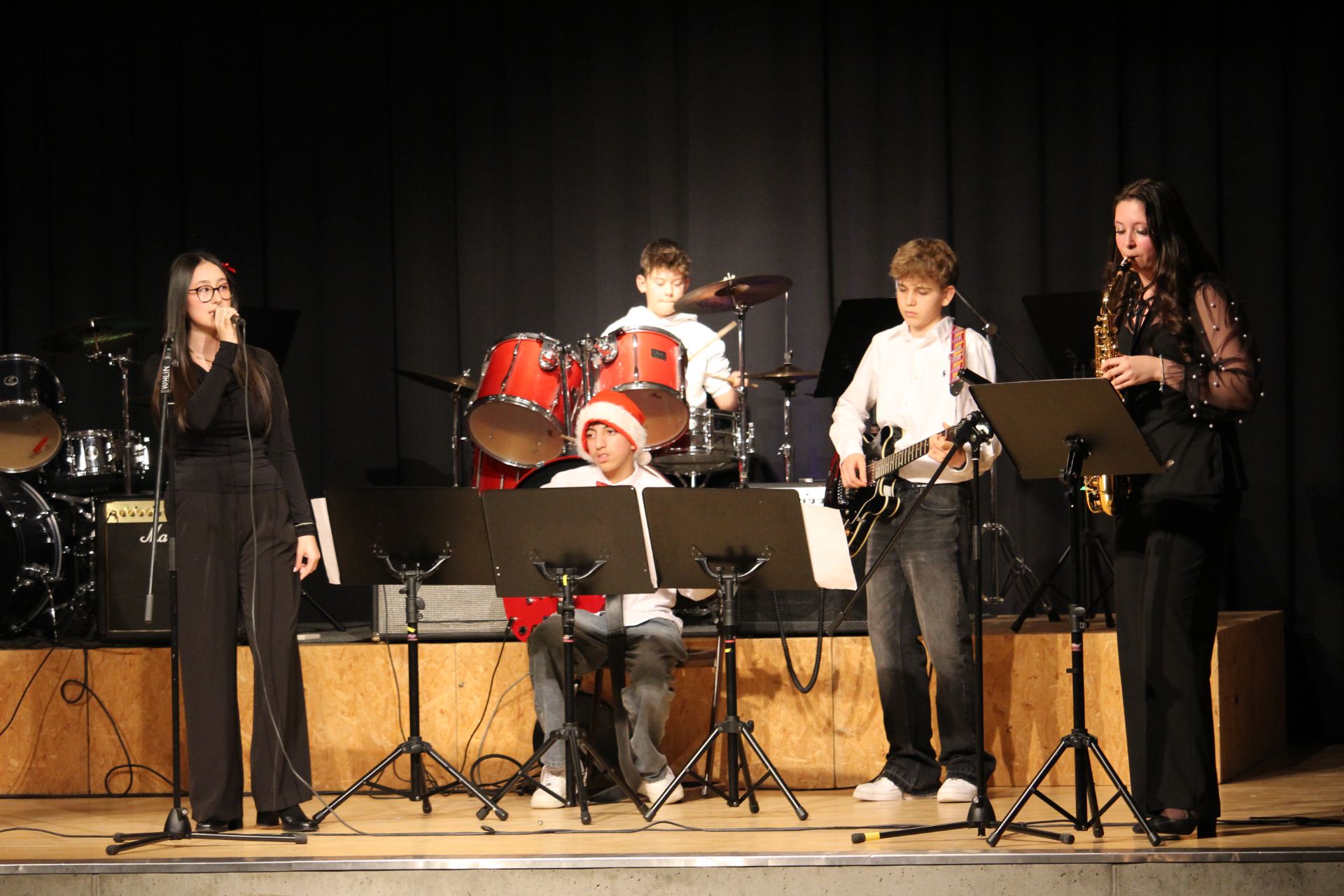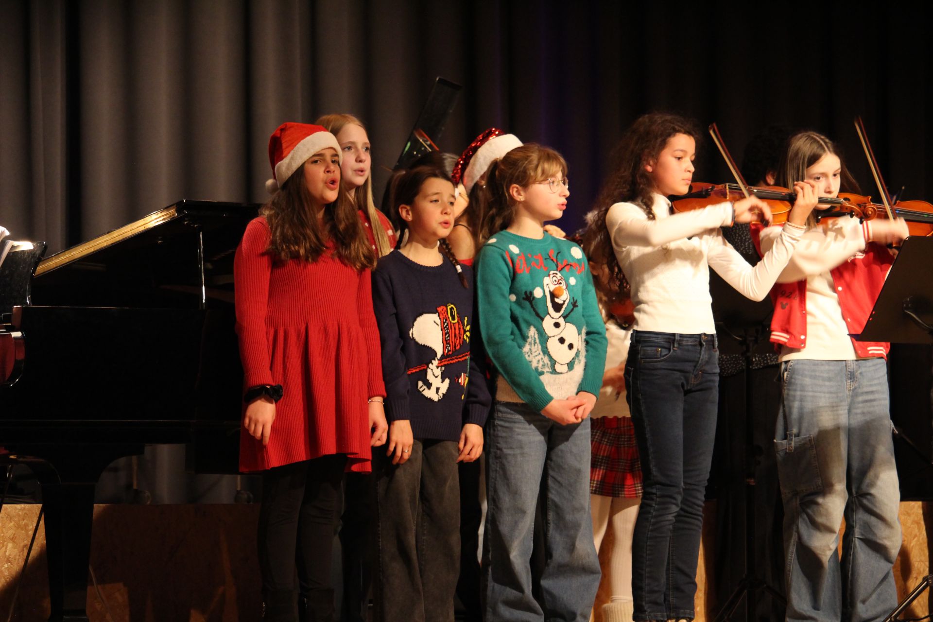 Den Auftakt machte der Unterstufenchor, der mit „Licht der Weihnacht“ und dem vertrauten „We wish you a merry Christmas“ sofort jene Stimmung erzeugte, die man sich in der Adventszeit erhofft: hell, klar und voller Vorfreude. Besonders schön wurde es, als der Chor gemeinsam mit den „Viöhlinis“, der Streichergruppe, „Feliz Navidad“ anstimmte – ein kleines musikalisches Friedenszeichen über Sprach- und Kulturgrenzen hinweg.