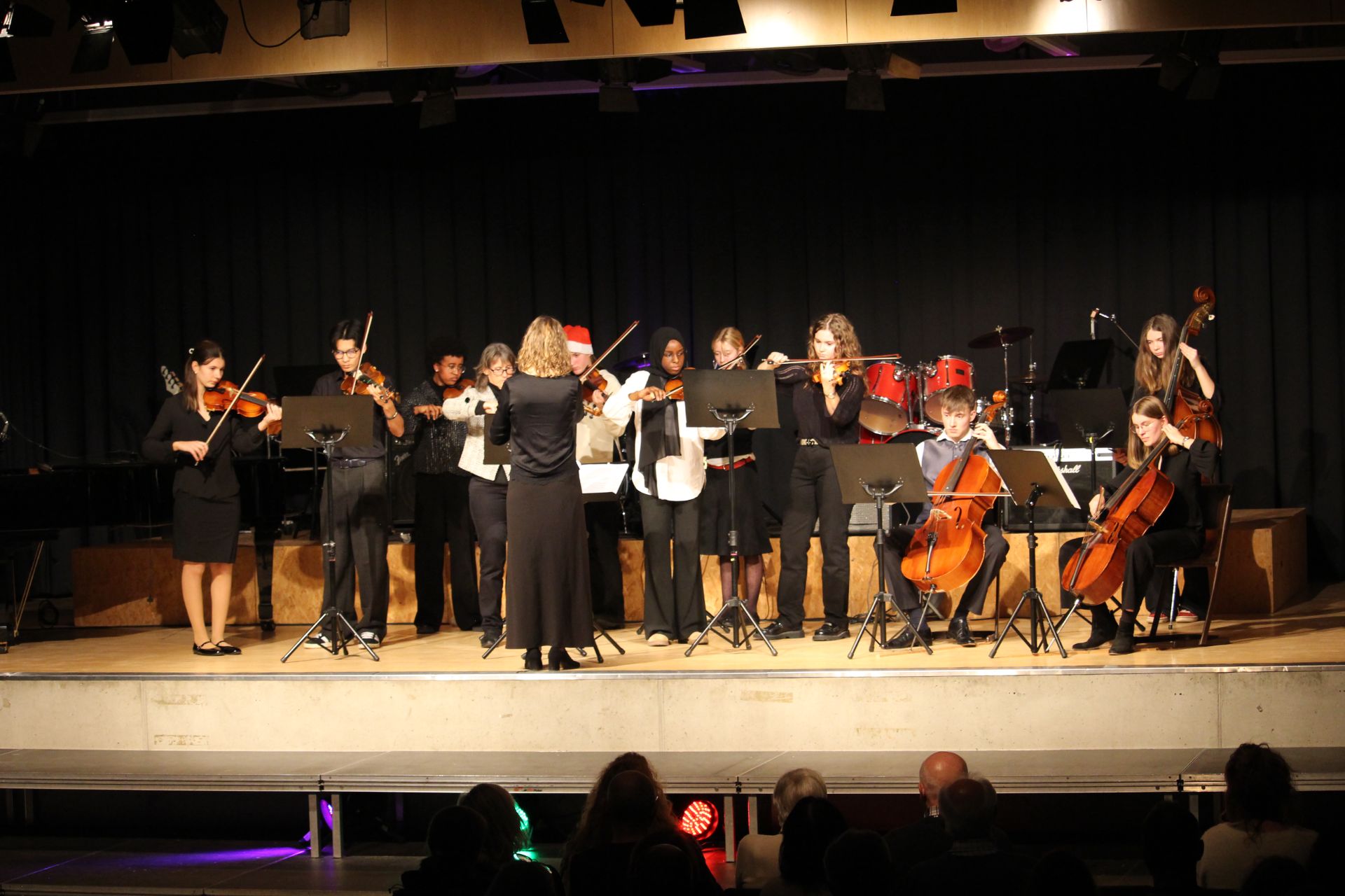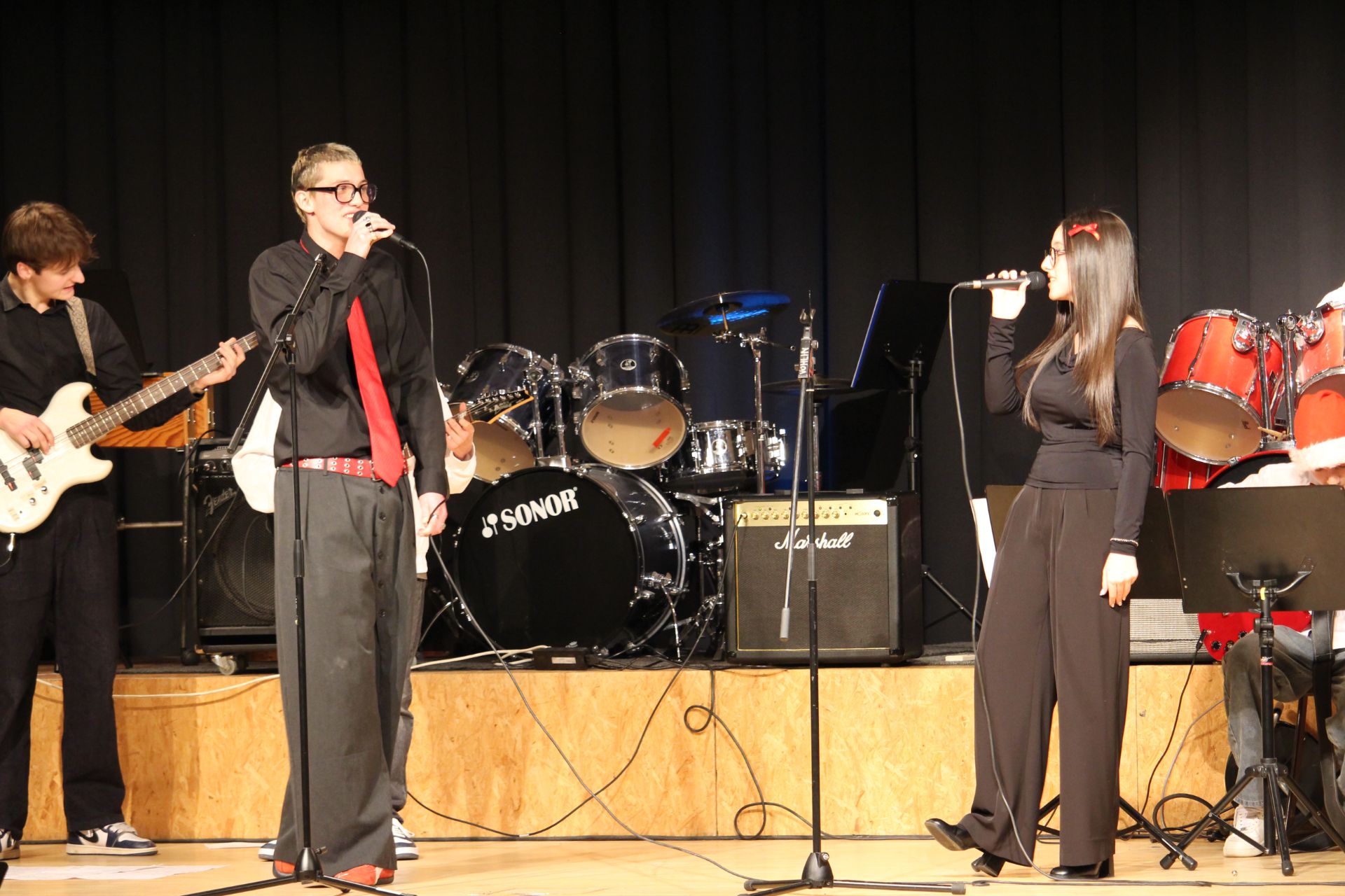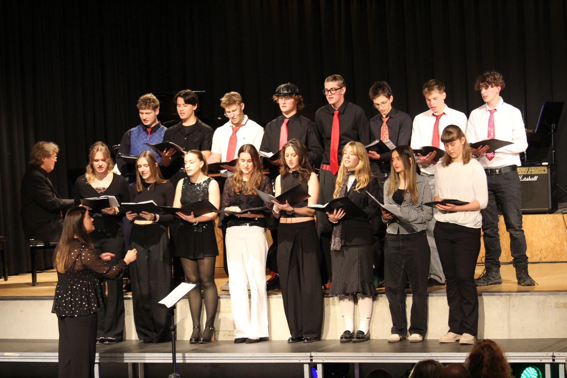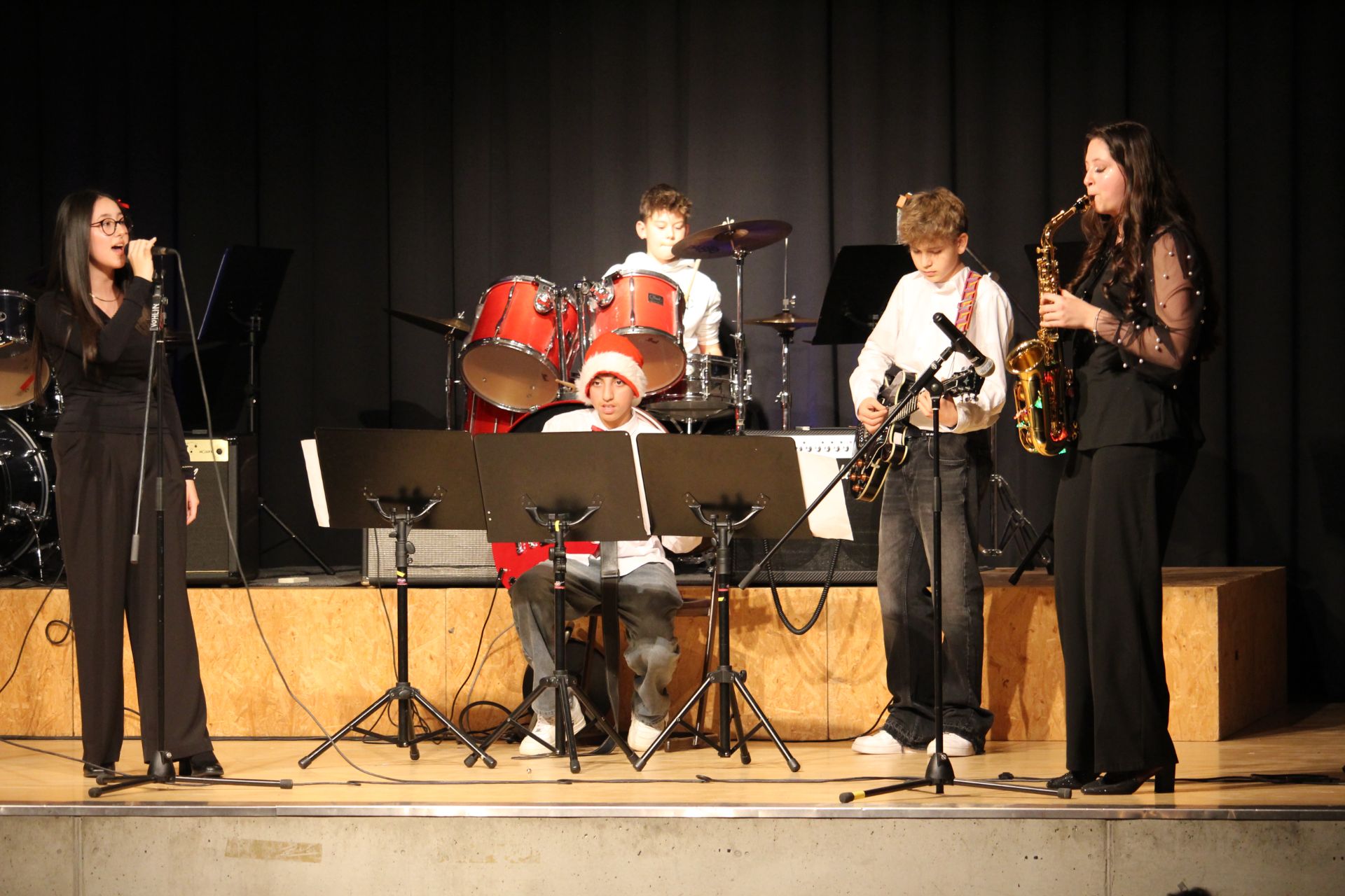 Den Auftakt machte der Unterstufenchor, der mit „Licht der Weihnacht“ und dem vertrauten „We wish you a merry Christmas“ sofort jene Stimmung erzeugte, die man sich in der Adventszeit erhofft: hell, klar und voller Vorfreude. Besonders schön wurde es, als der Chor gemeinsam mit den „Viöhlinis“, der Streichergruppe, „Feliz Navidad“ anstimmte – ein kleines musikalisches Friedenszeichen über Sprach- und Kulturgrenzen hinweg.