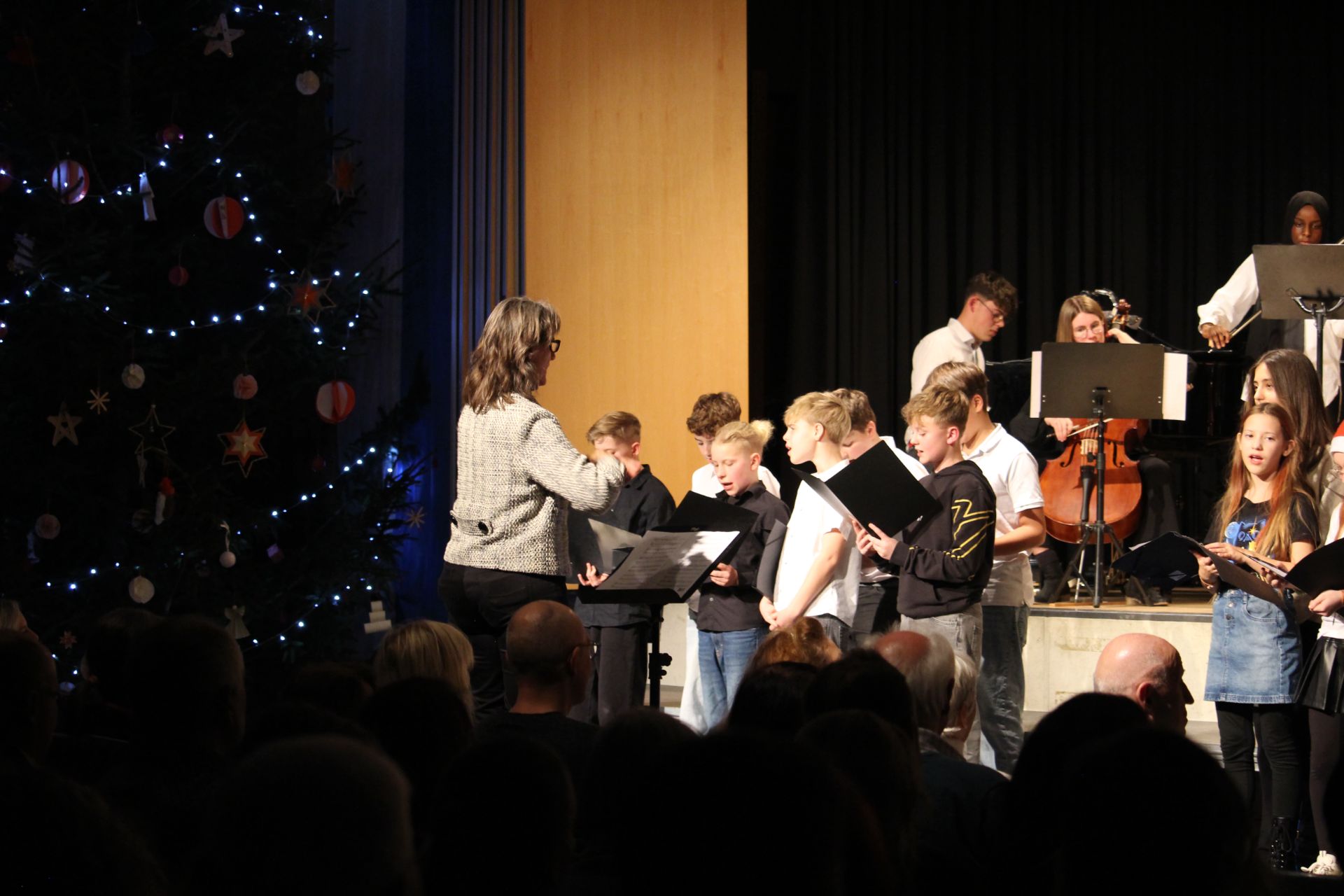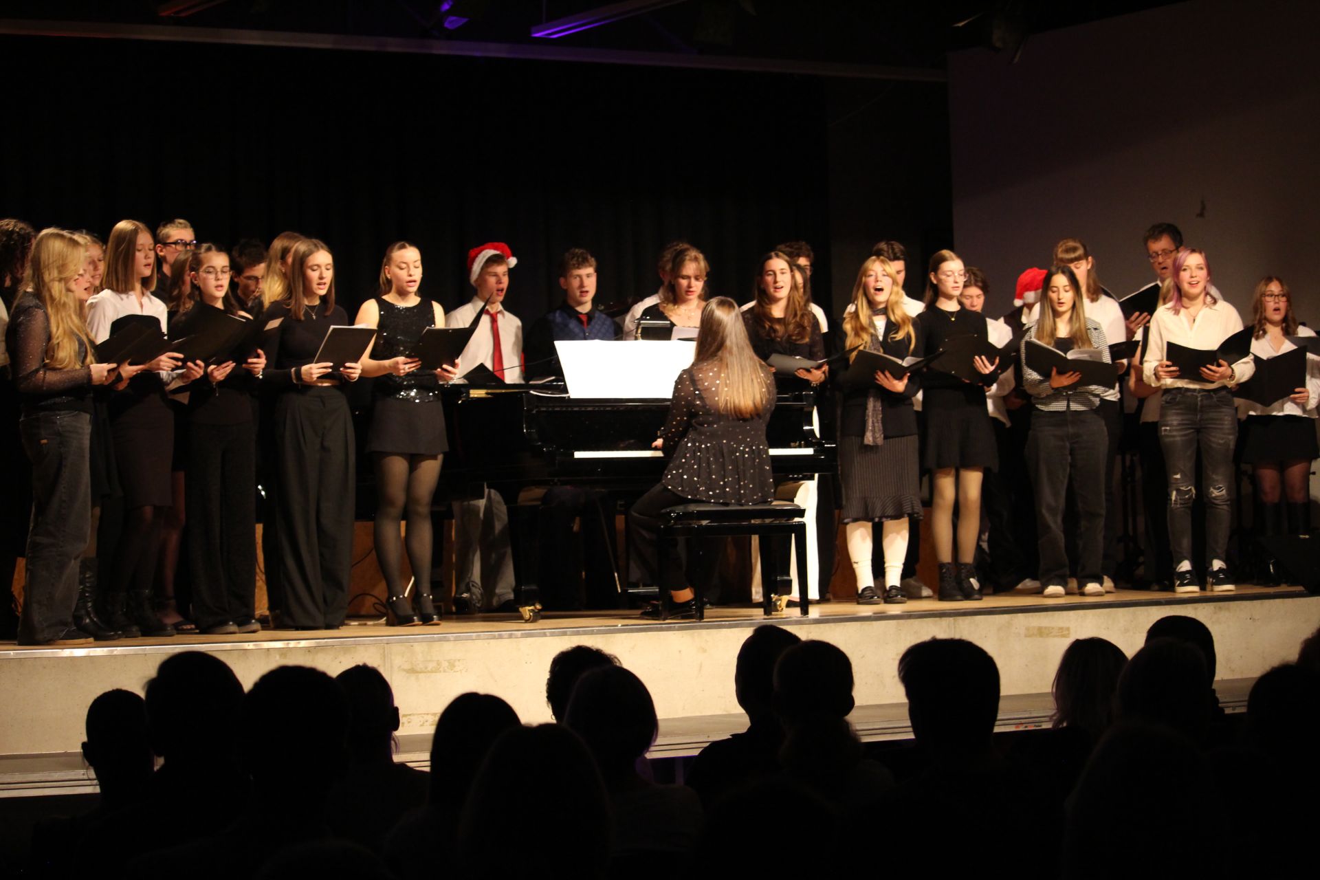 Der Oberstufenchor setzte starke Akzente: John Rutters „Star Carol“, das traditionsreiche „God rest you, merry gentlemen“ und schließlich John Lennons und Yoko Onos „Happy Xmas (War Is Over)“ – ein Lied, das das Konzertmotto auf den Punkt brachte.
