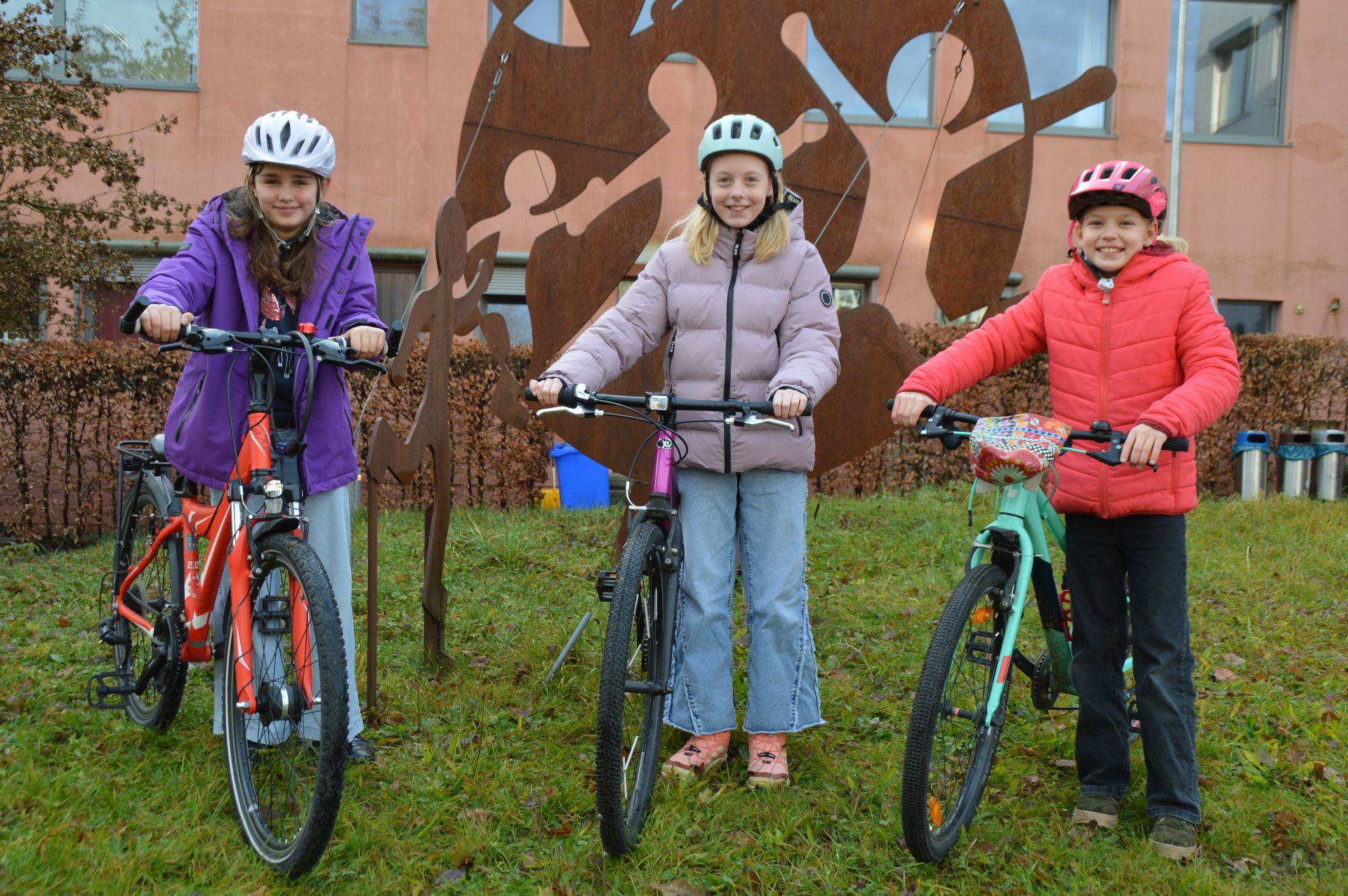 Unsere Schülerinnen aus der 5d zeigen, wie viel Spaß sie am Radfahren haben (von links: Alina Tucholski, Kim Keck, Luzie Hereth).