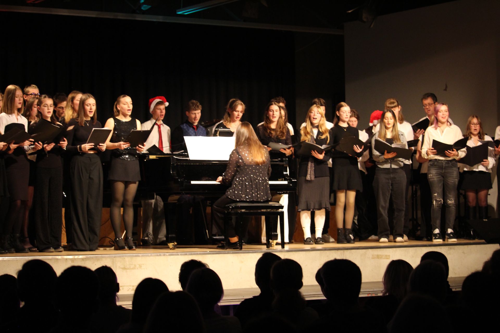 Der Oberstufenchor setzte starke Akzente: John Rutters „Star Carol“, das traditionsreiche „God rest you, merry gentlemen“ und schließlich John Lennons und Yoko Onos „Happy Xmas (War Is Over)“ – ein Lied, das das Konzertmotto auf den Punkt brachte.