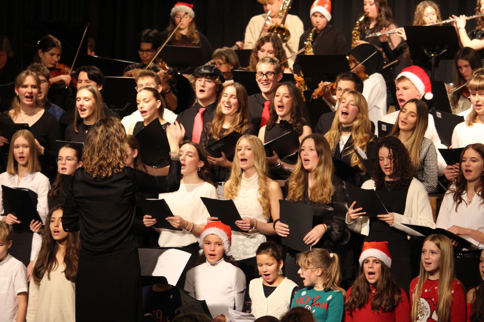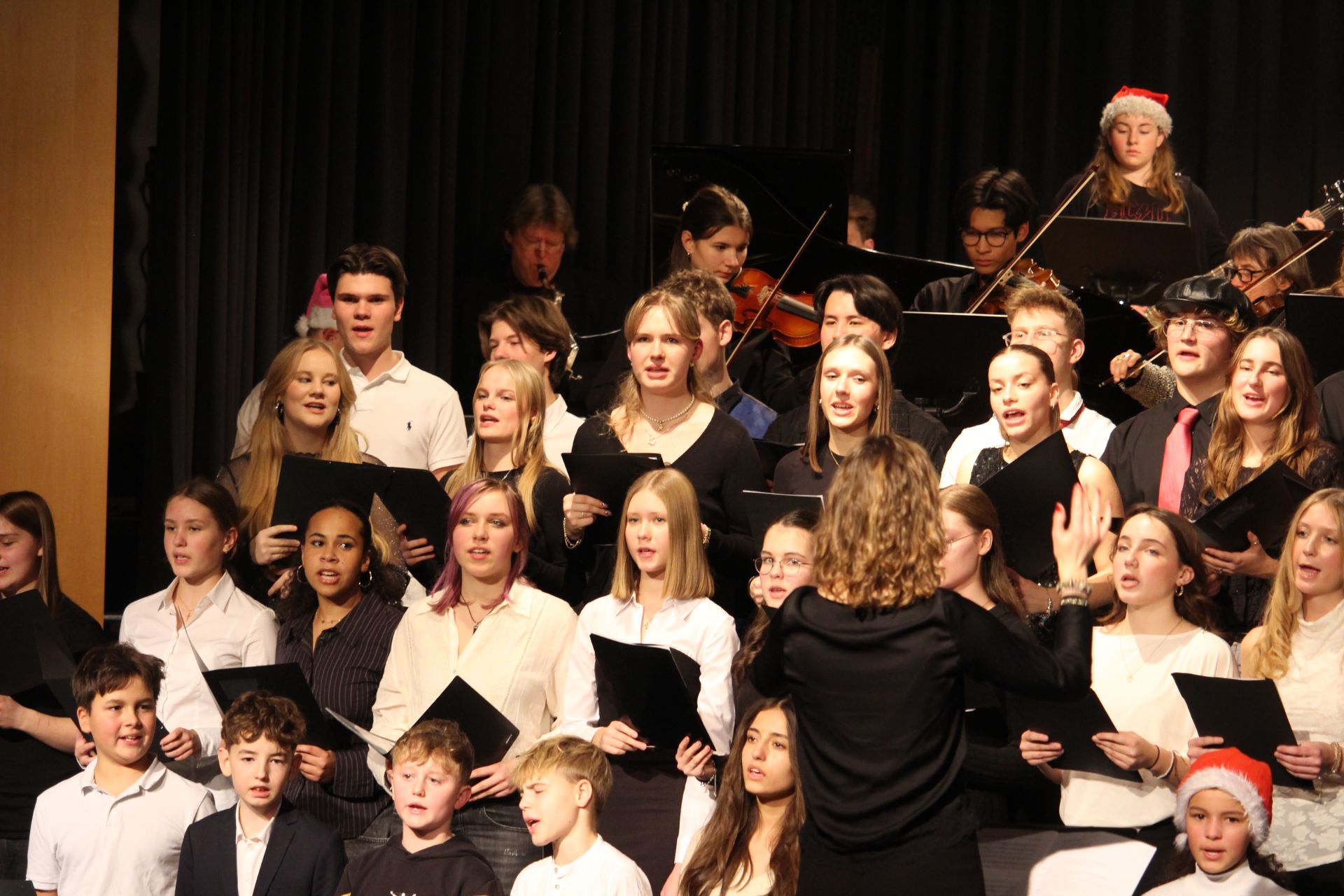 Der zweite Teil begann zart mit dem Mittelstufenchor und der „Christmas Lullaby“, einem Wiegenlied voller Ruhe. Chor und Instrumentalensemble begeisterten anschließend mit „All I Want for Christmas Is You“.